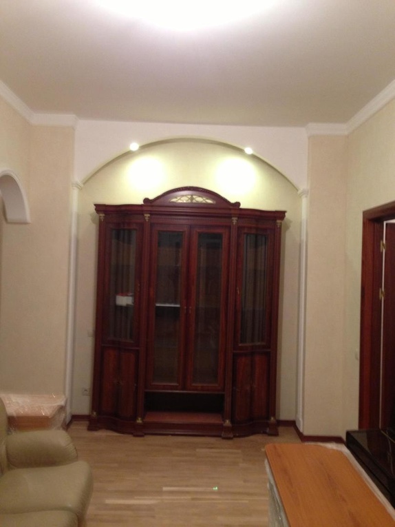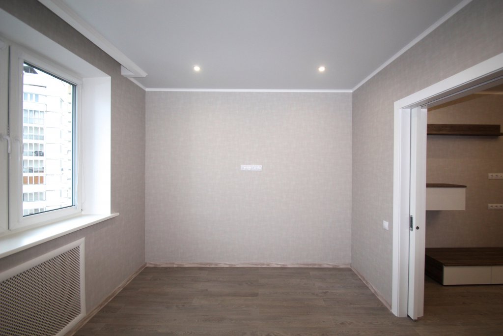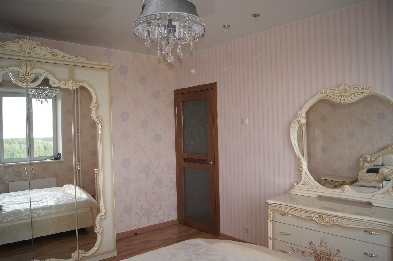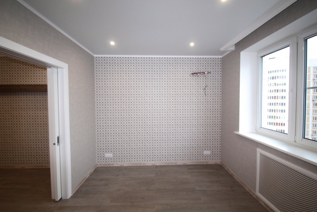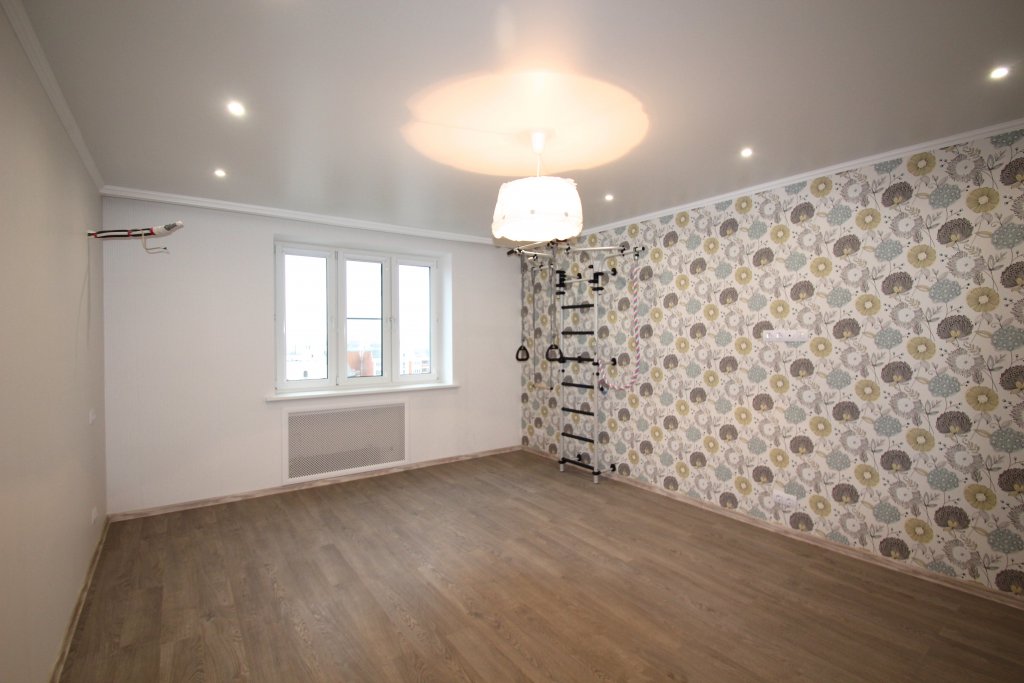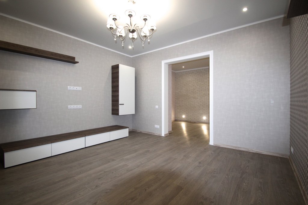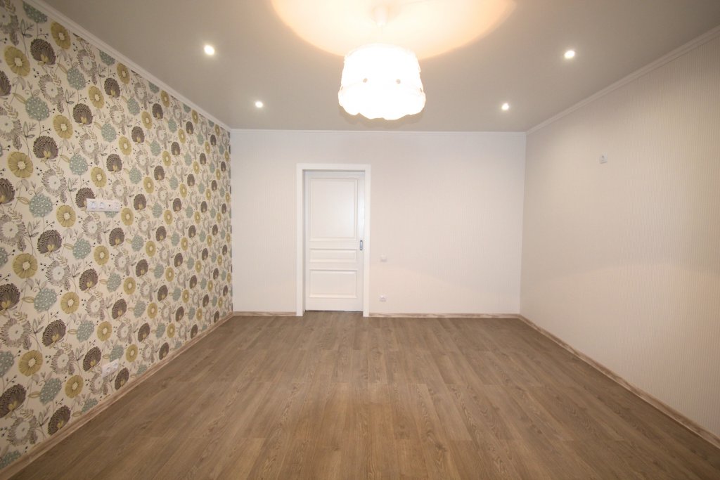 выполнен ремонт «под ключ»: стяжка, штукатурка, шпаклевка, натяжные потолки с элементами