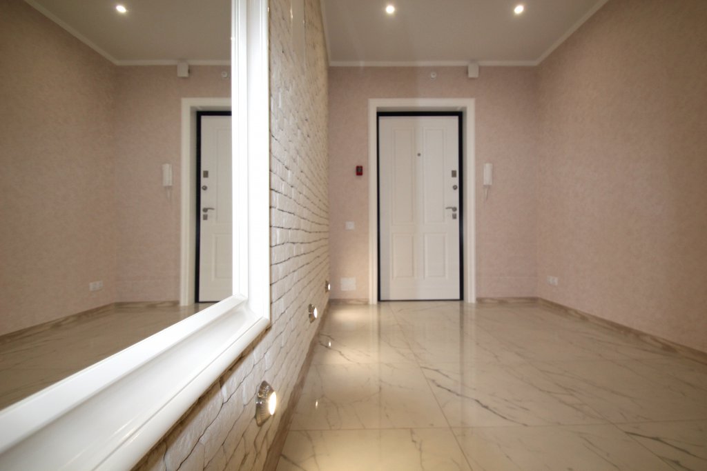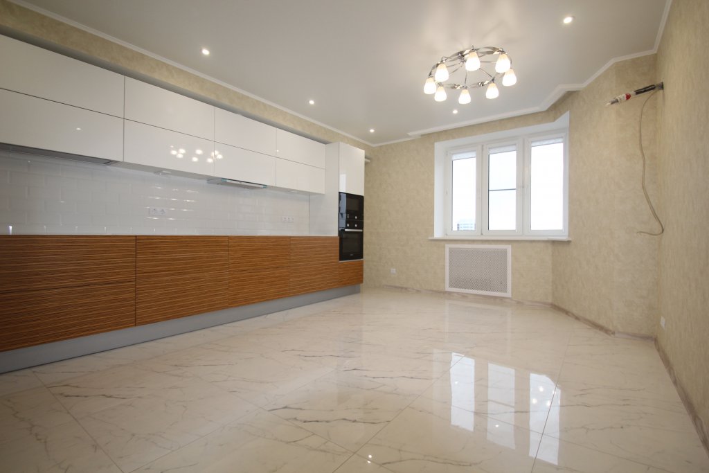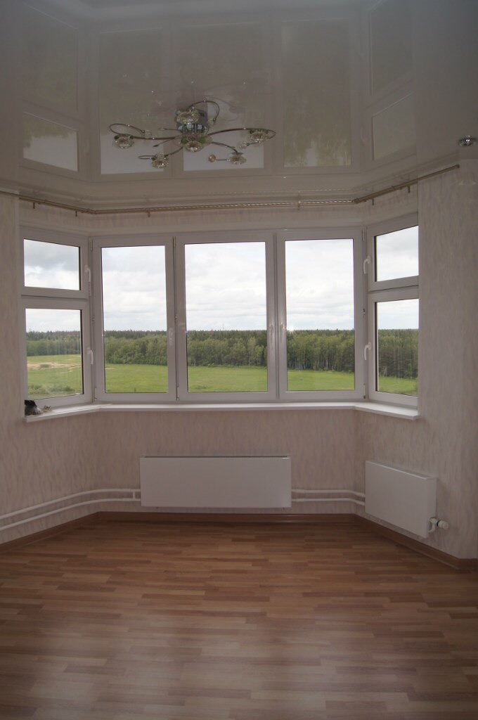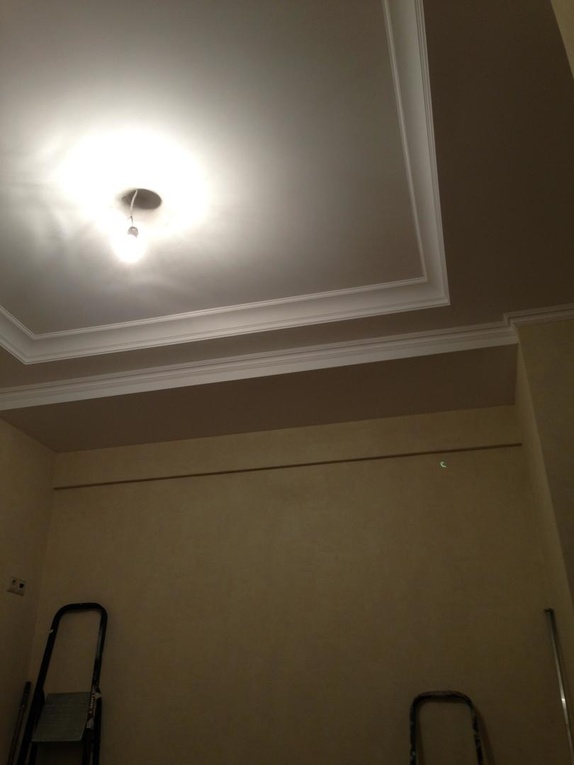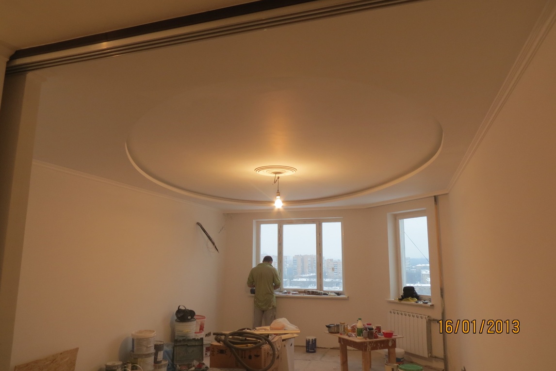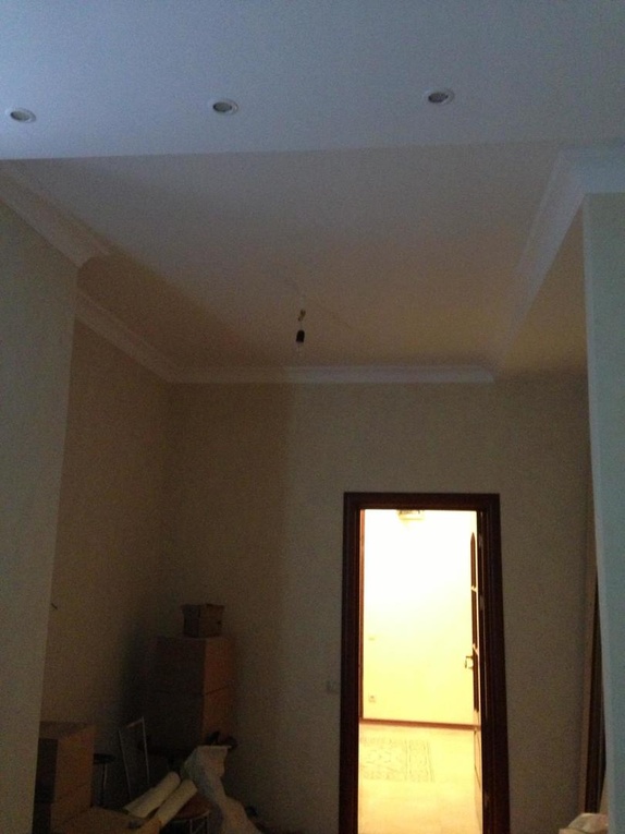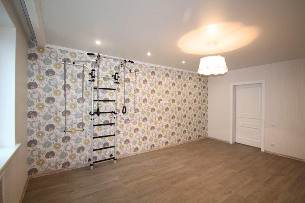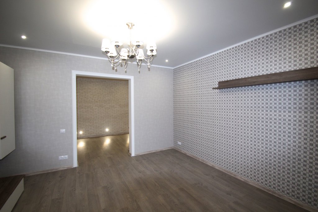выполнен ремонт «под ключ»: стяжка, штукатурка, шпаклевка, натяжные потолки с элементами
