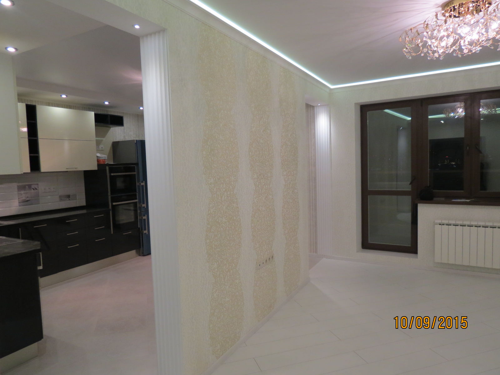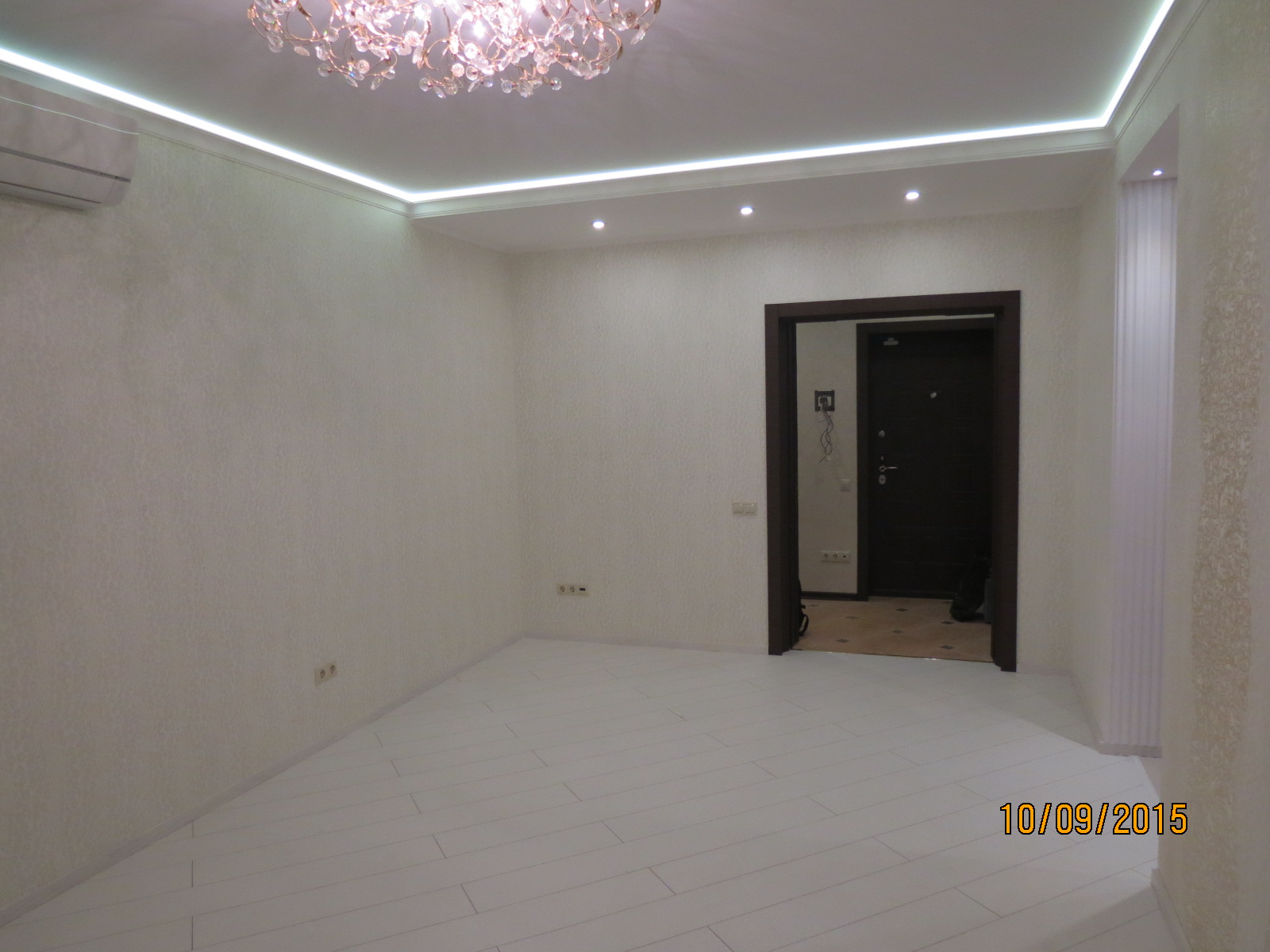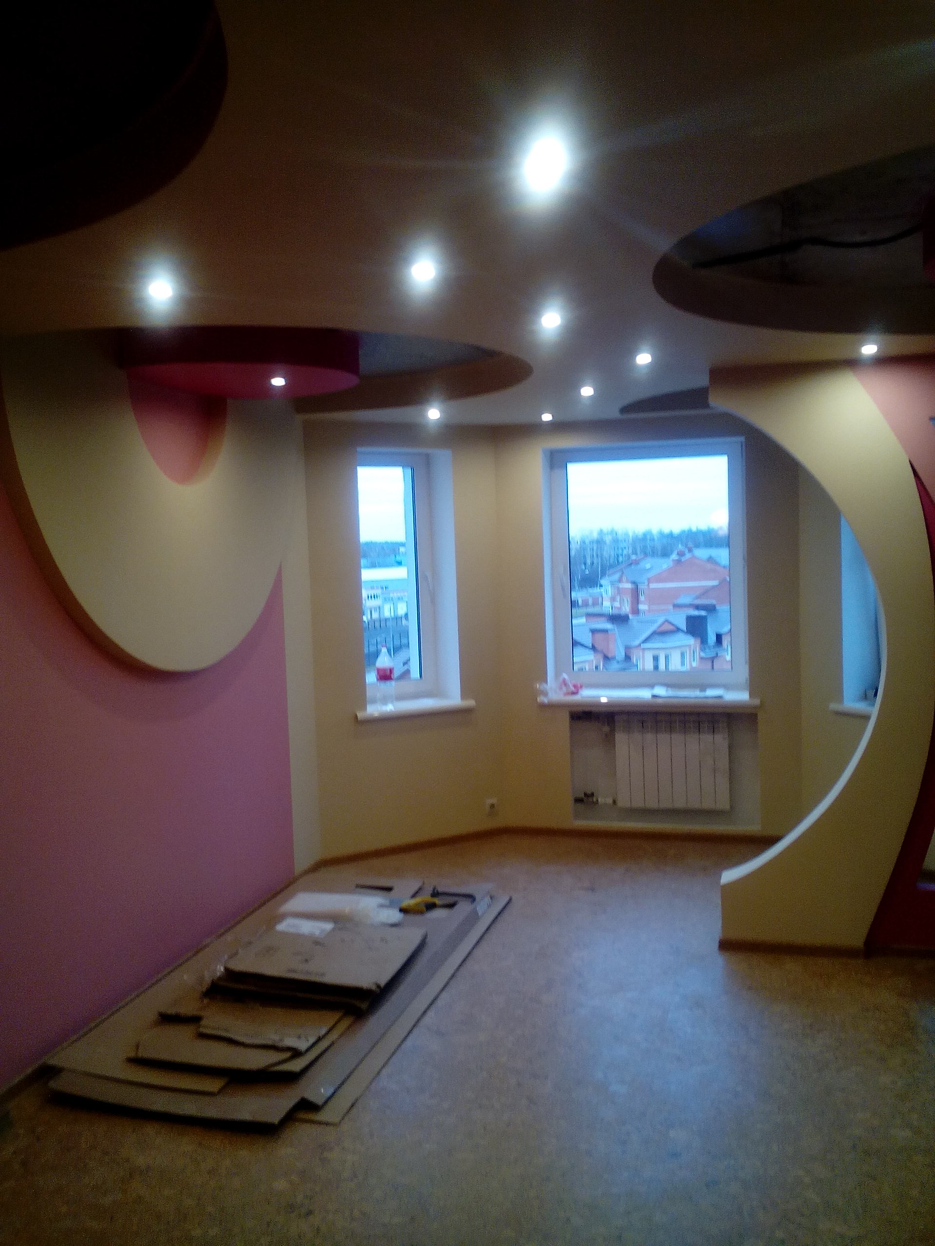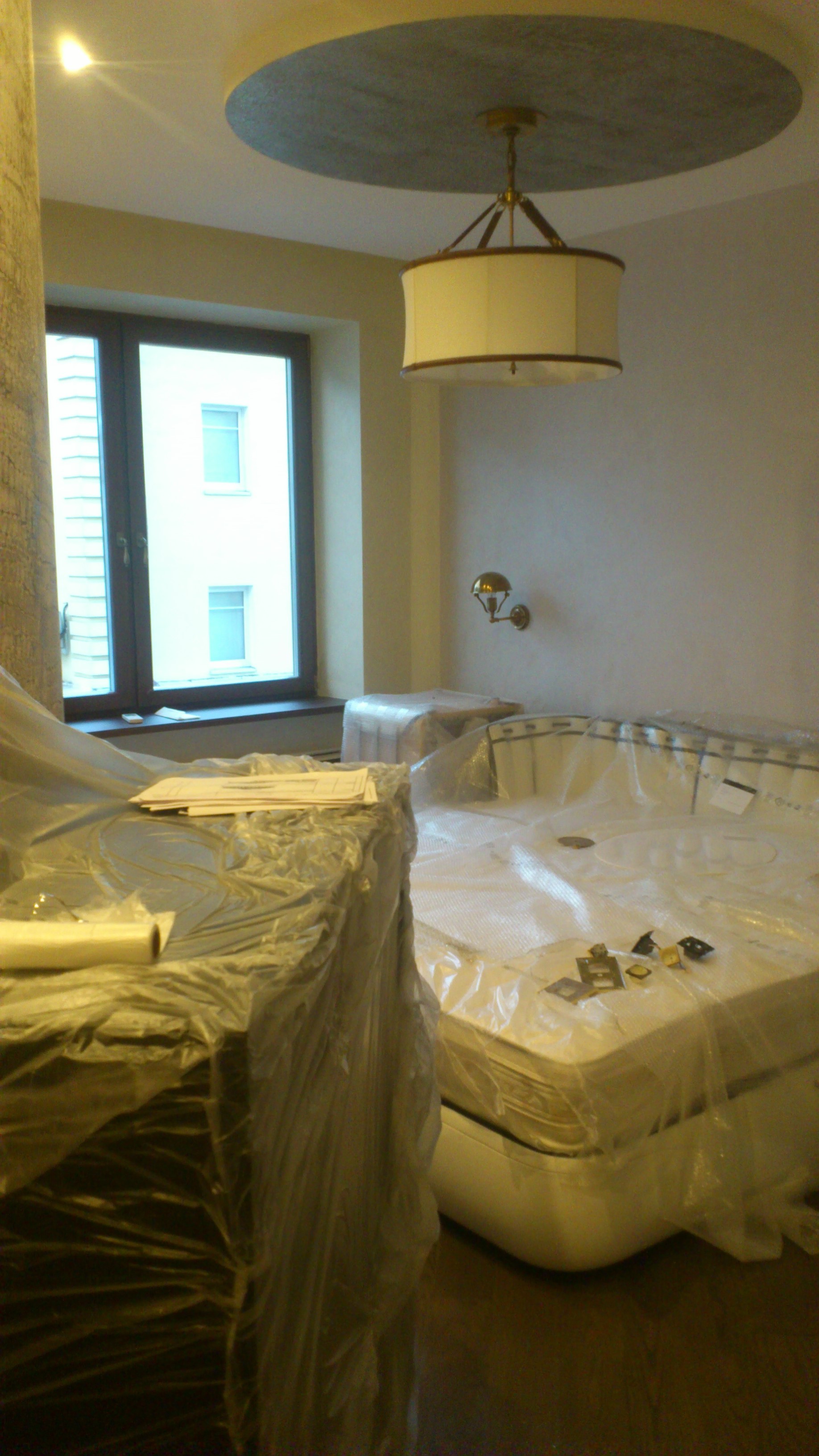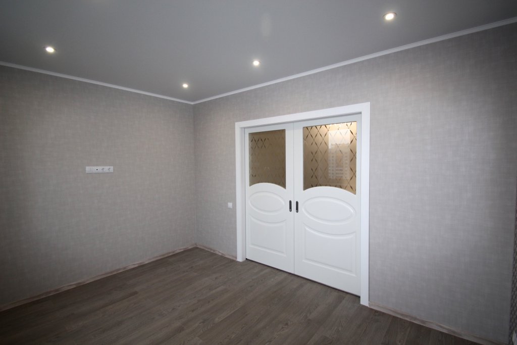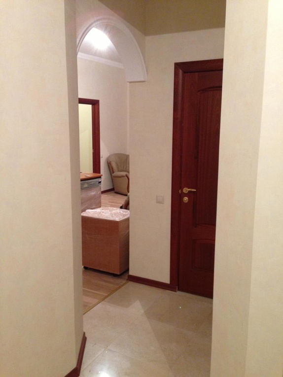 выполнен ремонт «под ключ»: стяжка, штукатурка, шпаклевка, натяжные потолки с элементами