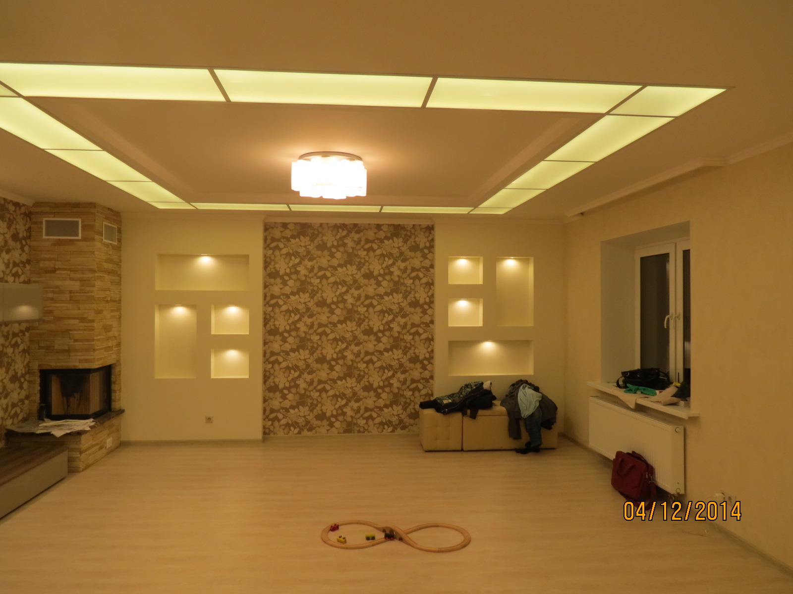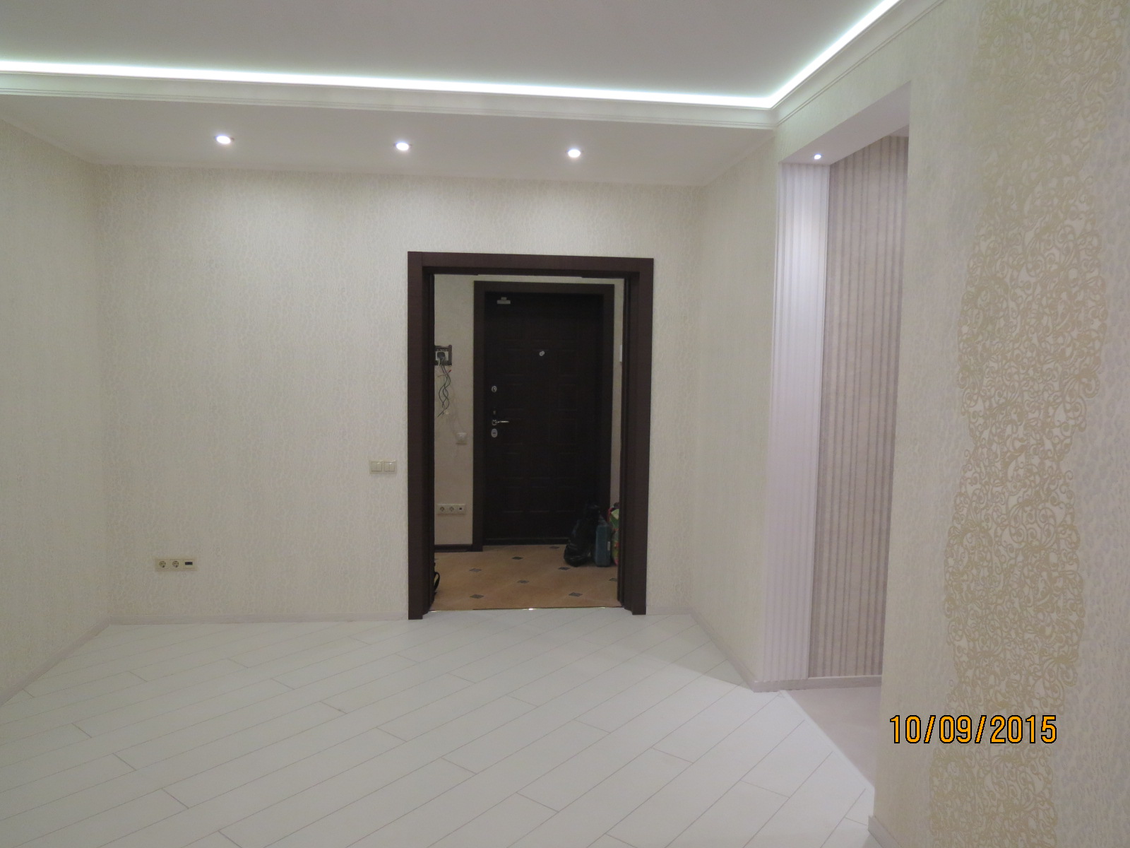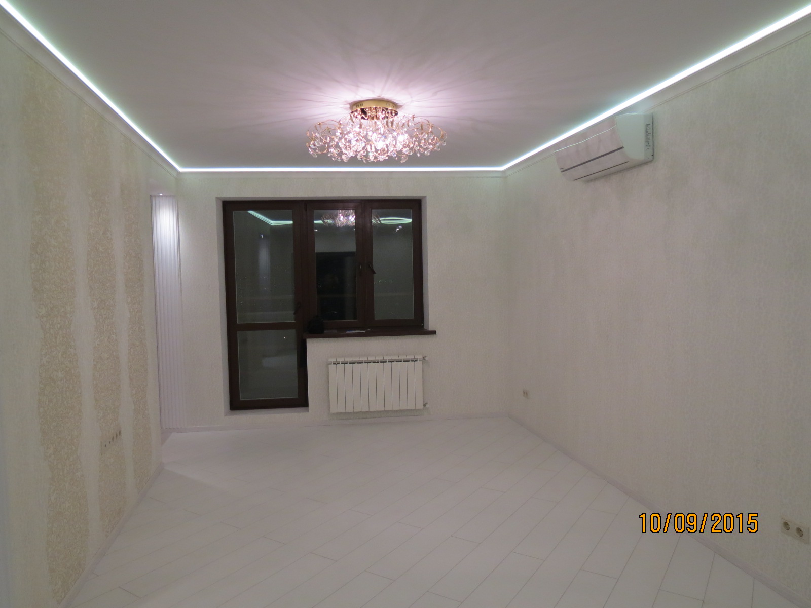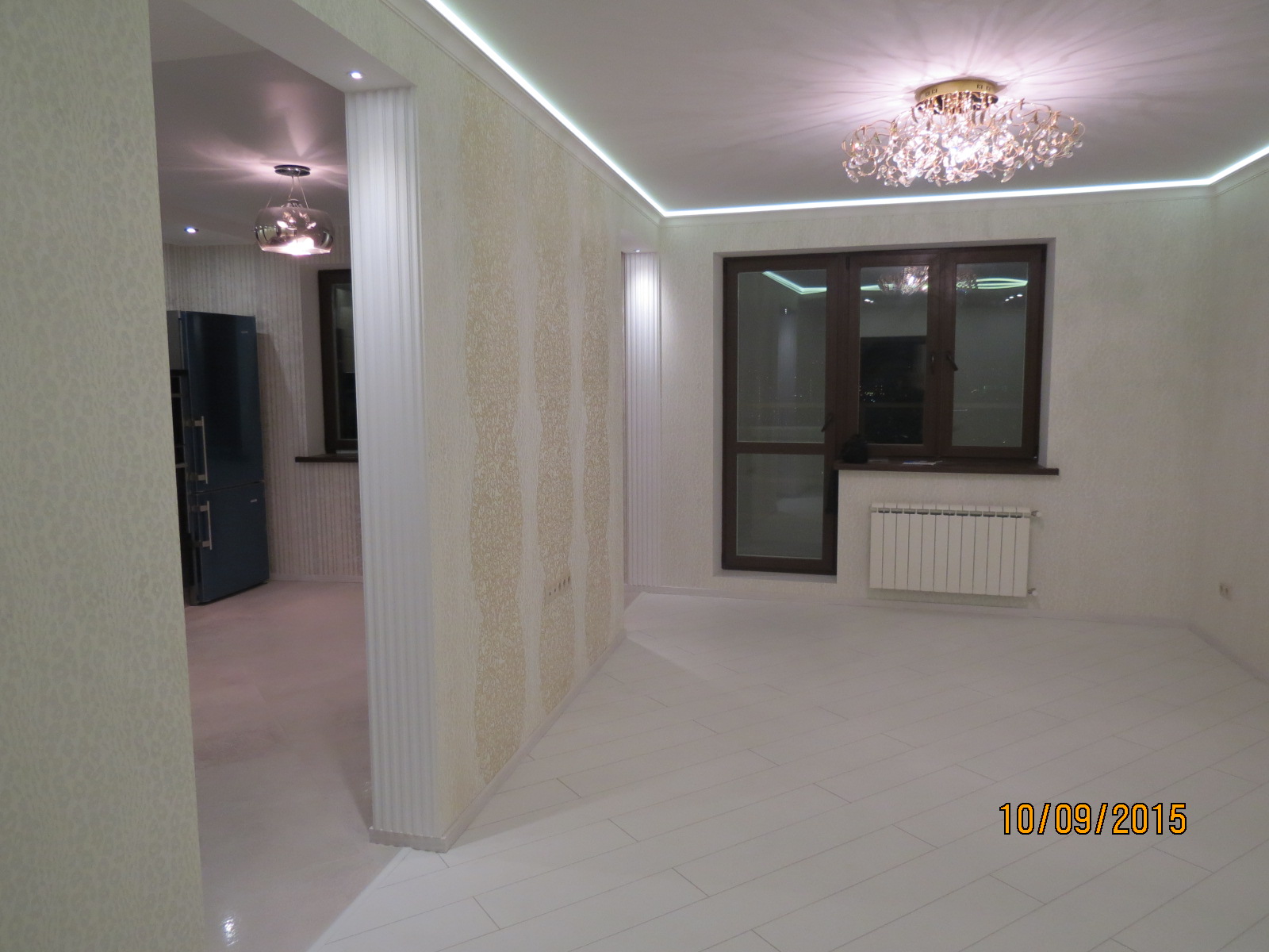 выполнен ремонт «под ключ»: стяжка, штукатурка, шпаклевка, натяжные потолки с элементами