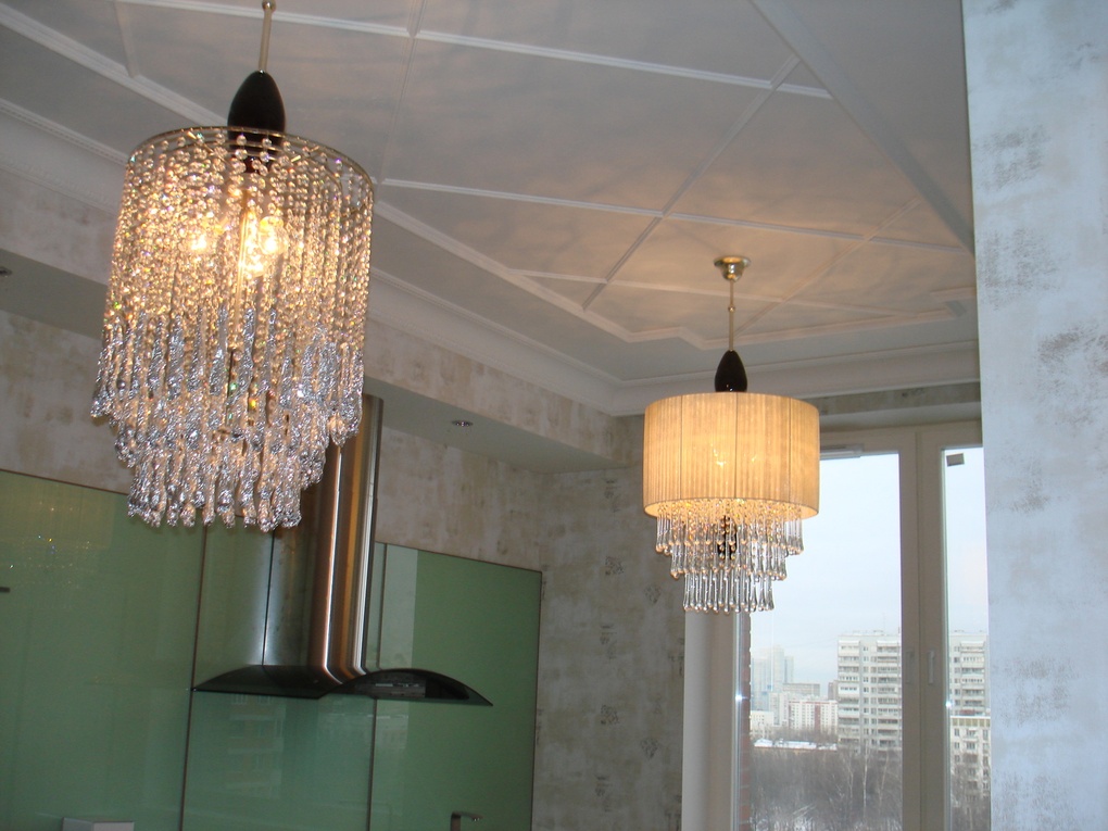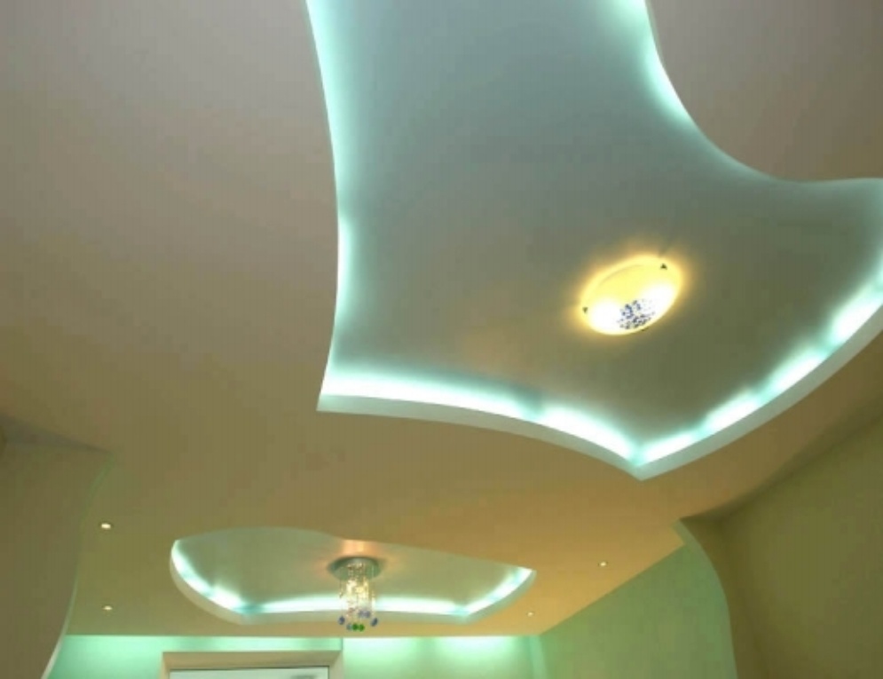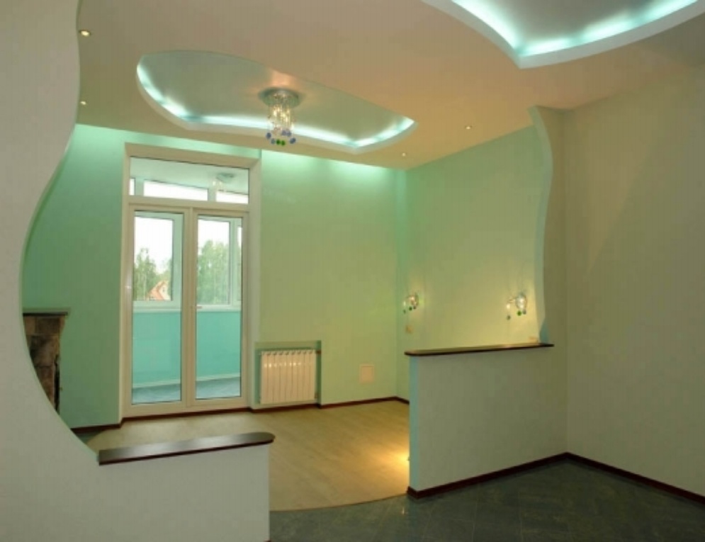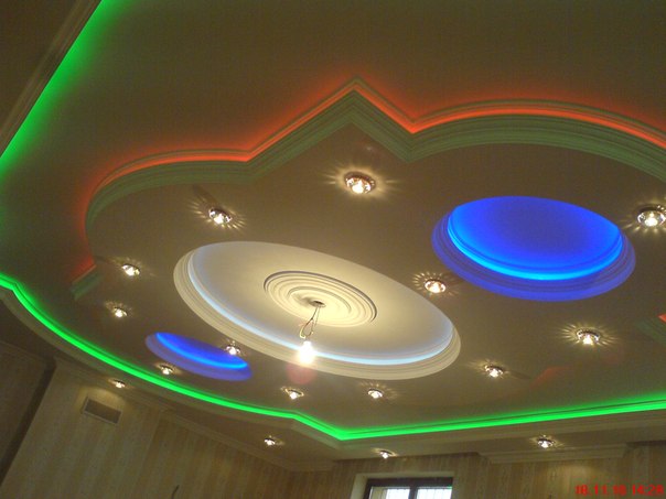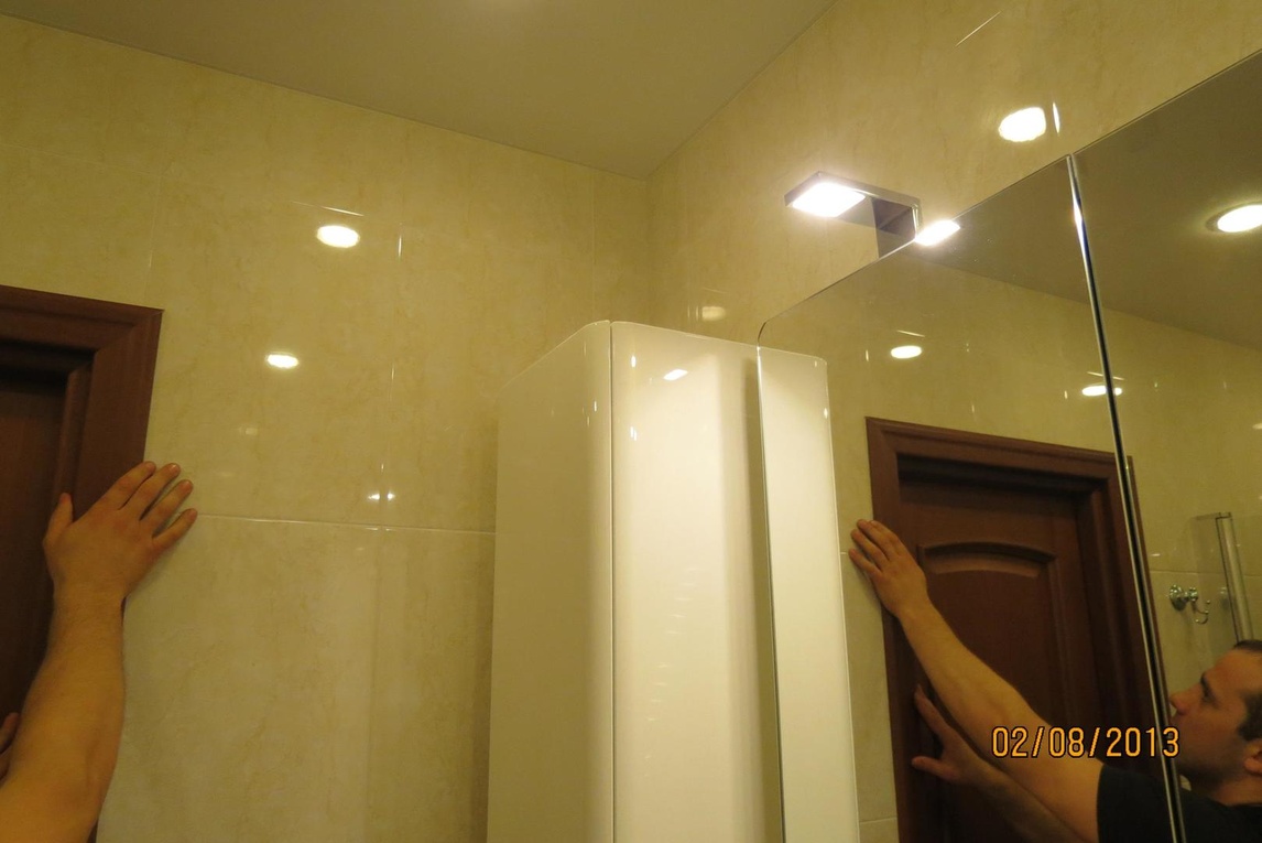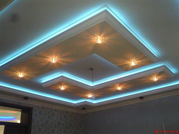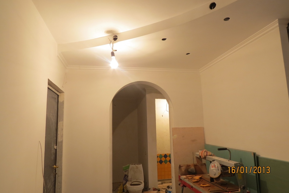 из гипсокартона и подсветкой, разводка электрики, установка сантехники.