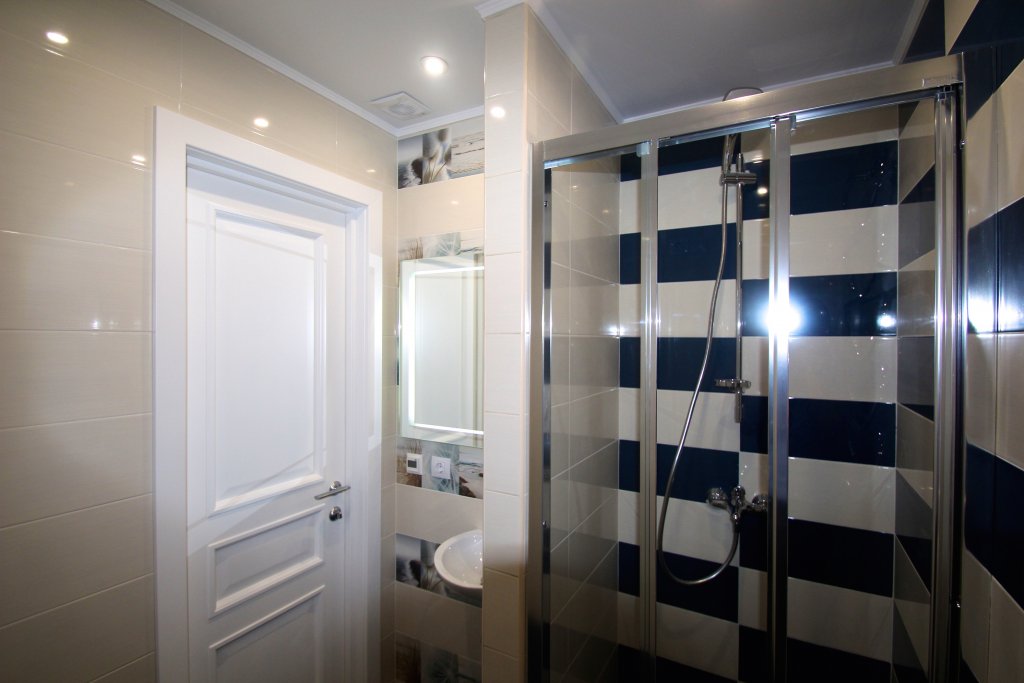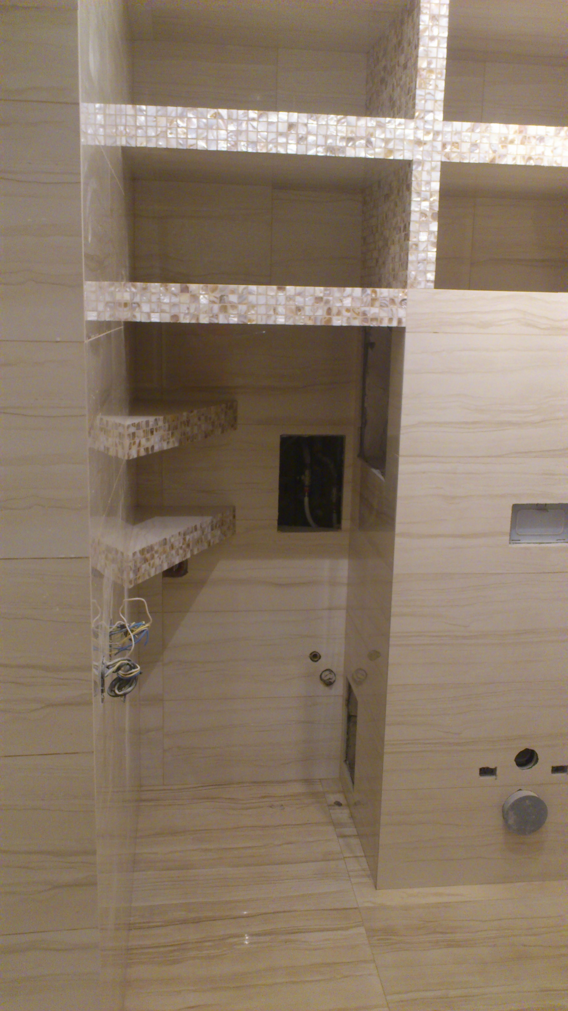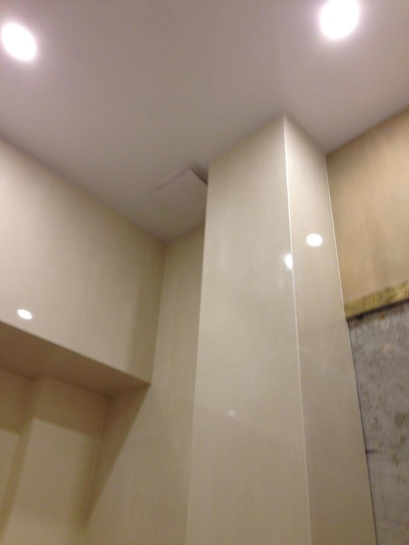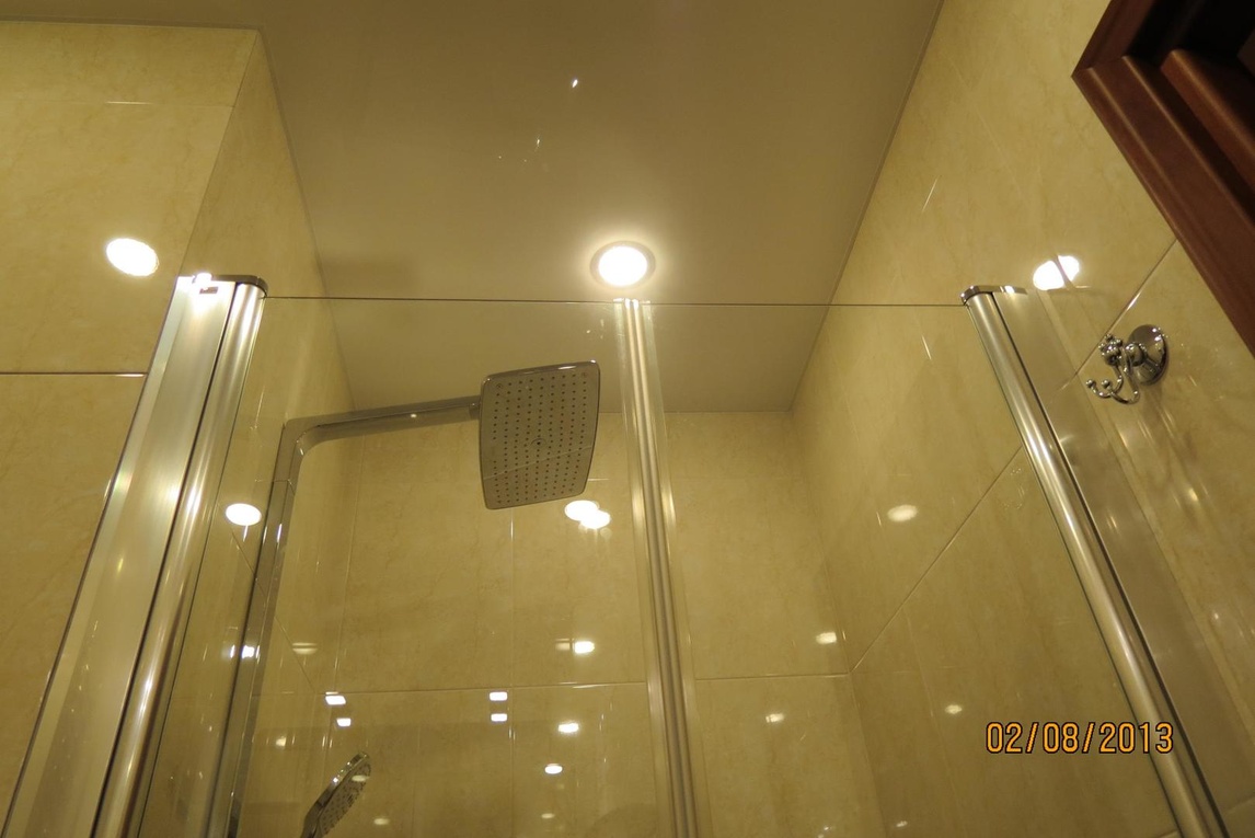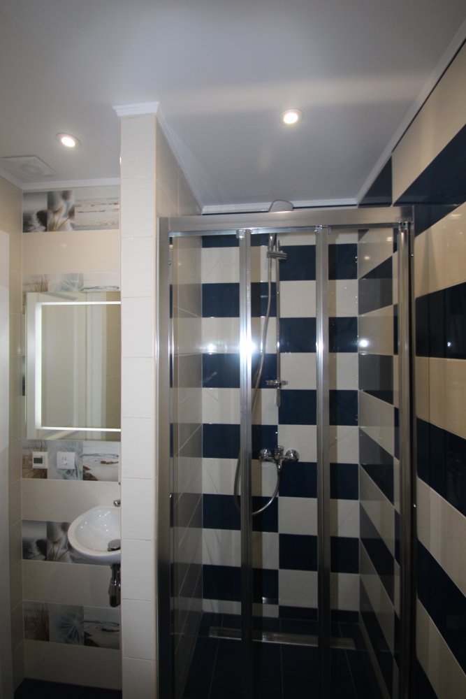 из гипсокартона и подсветкой, разводка электрики, установка сантехники.