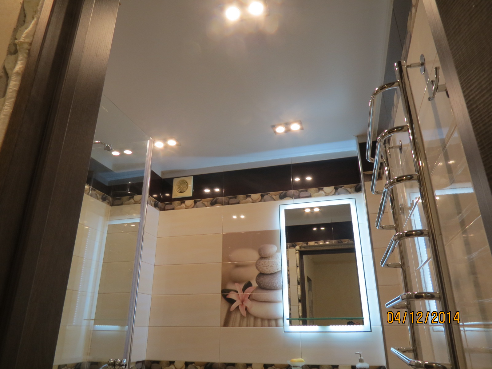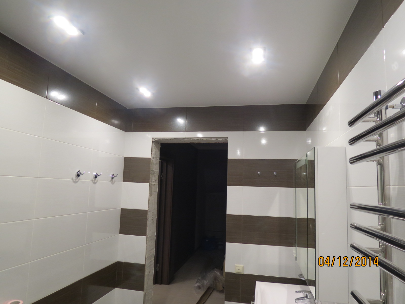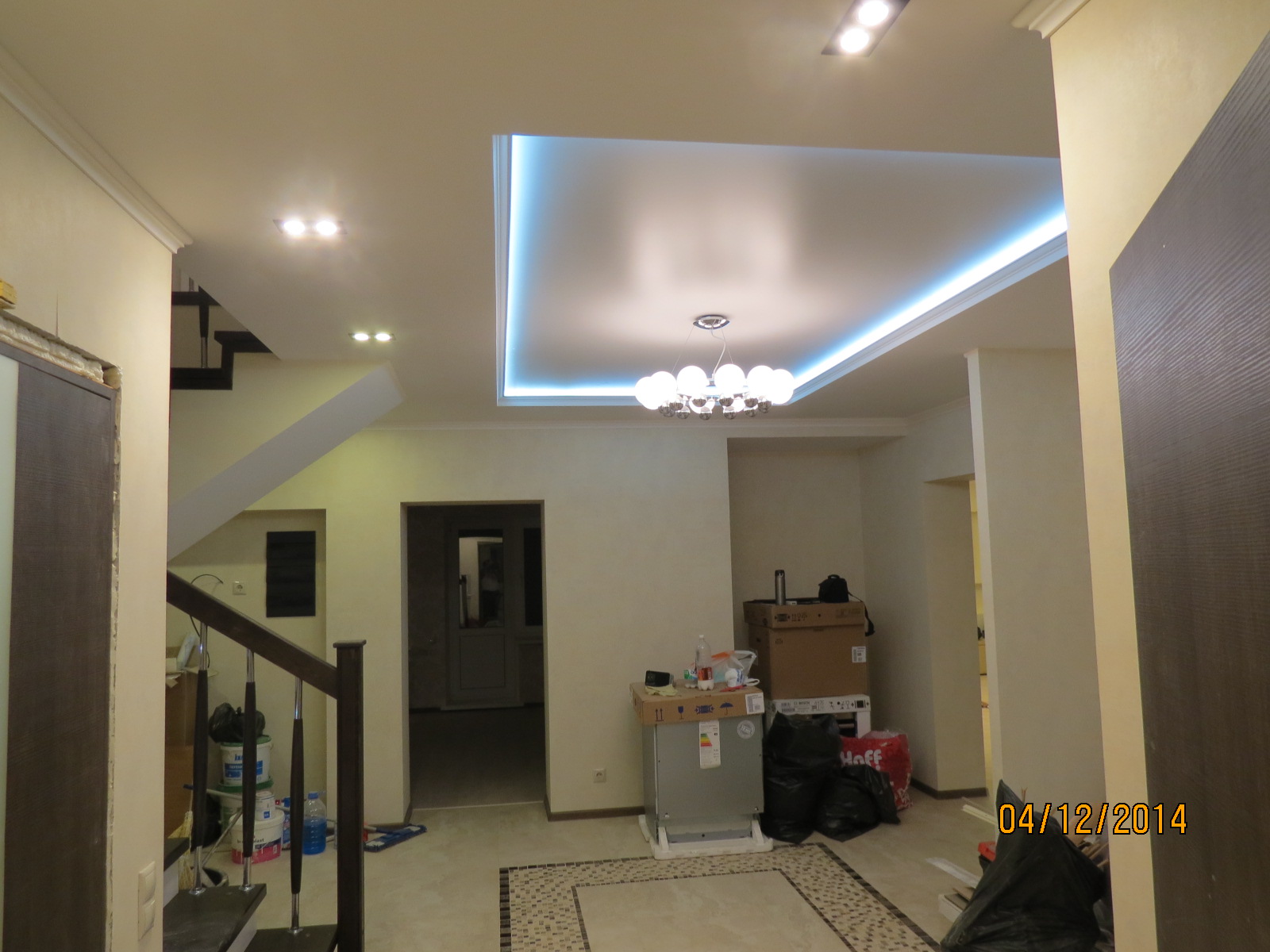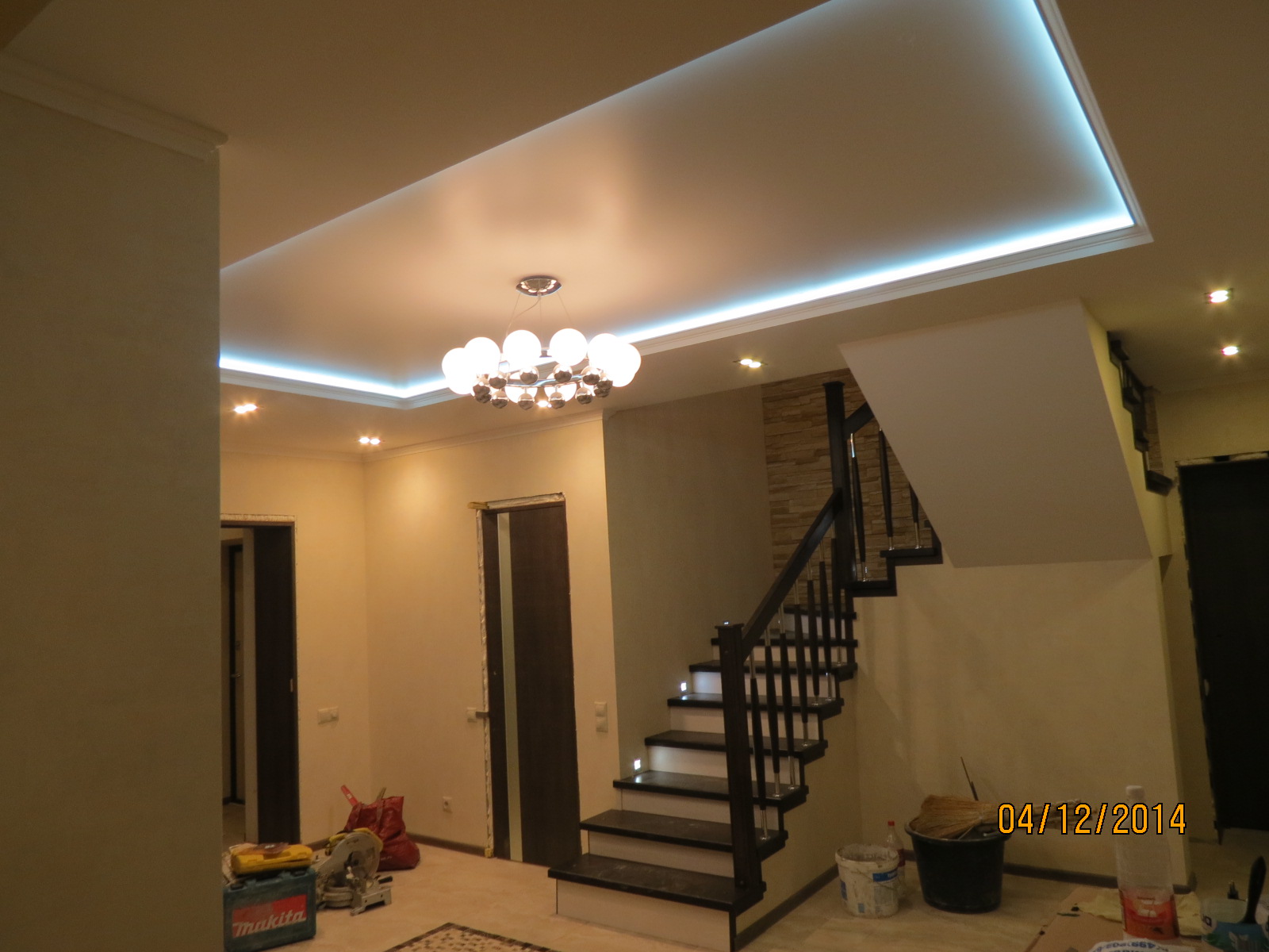 из гипсокартона и подсветкой, разводка электрики, установка сантехники.