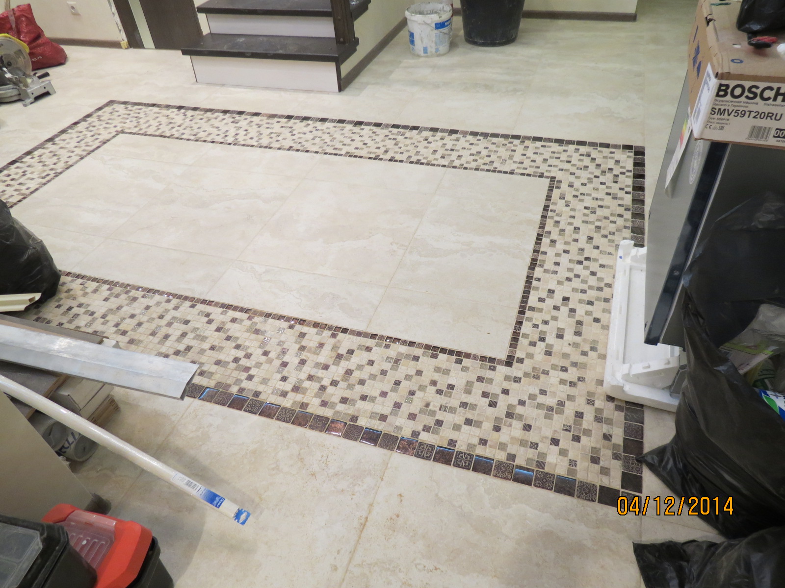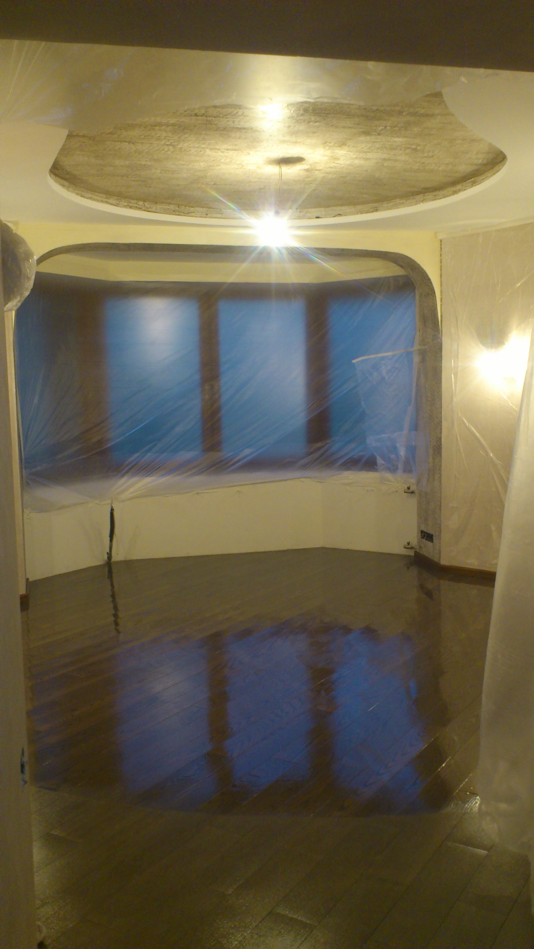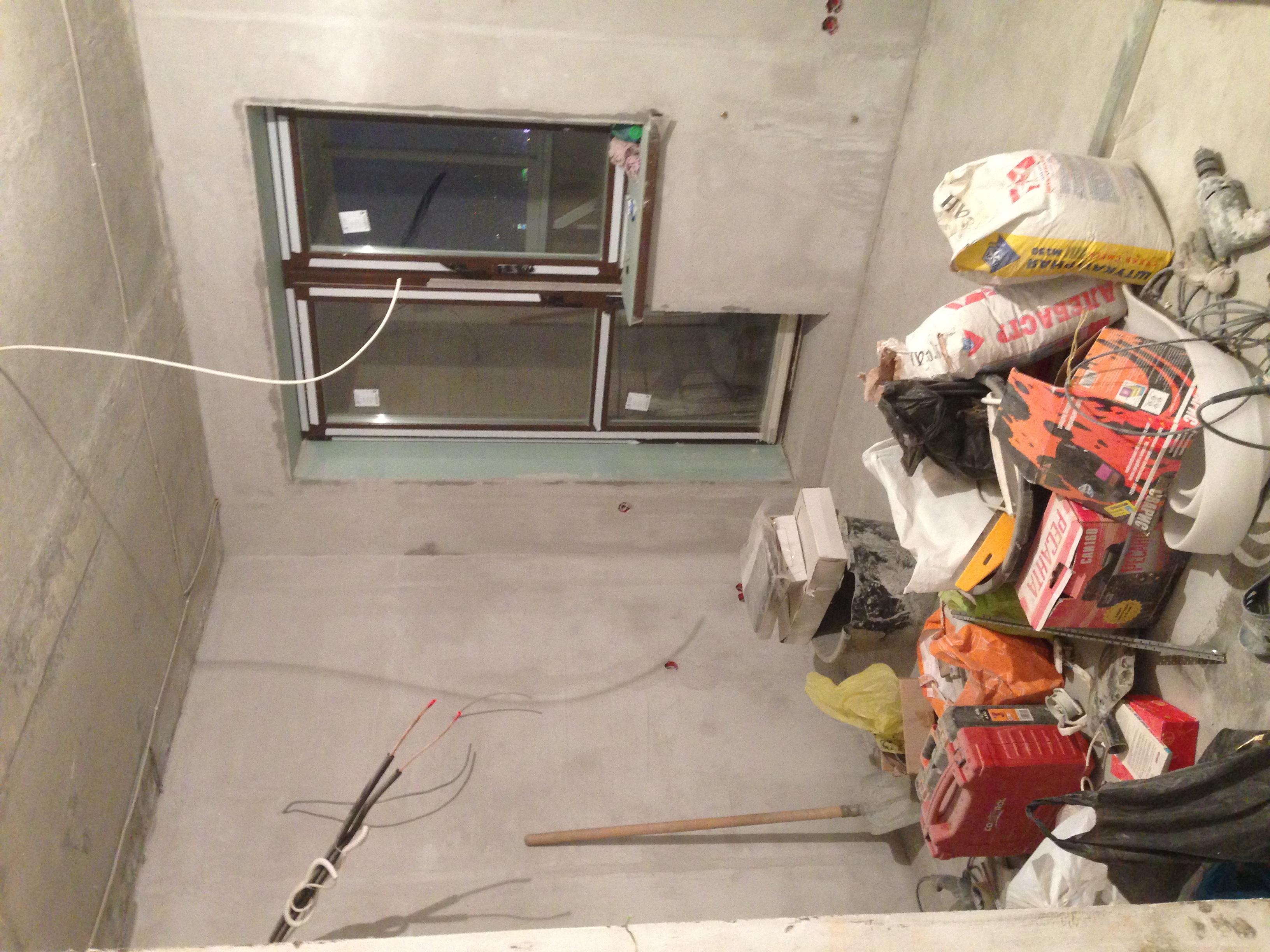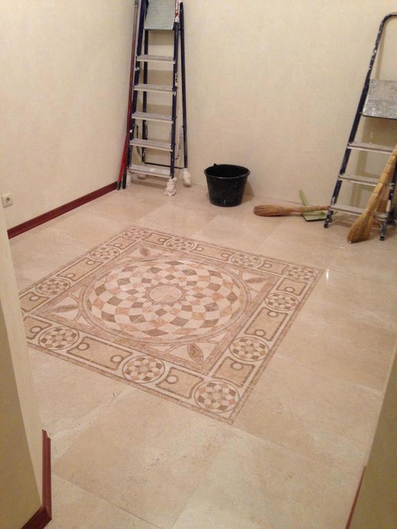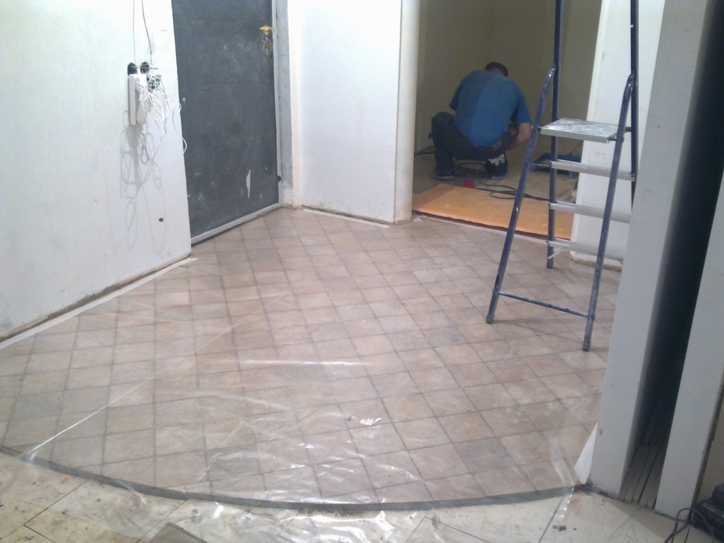 Выполнялись работы по демонтажу и укладке полов: сделана стяжка и выравнивание. Позже