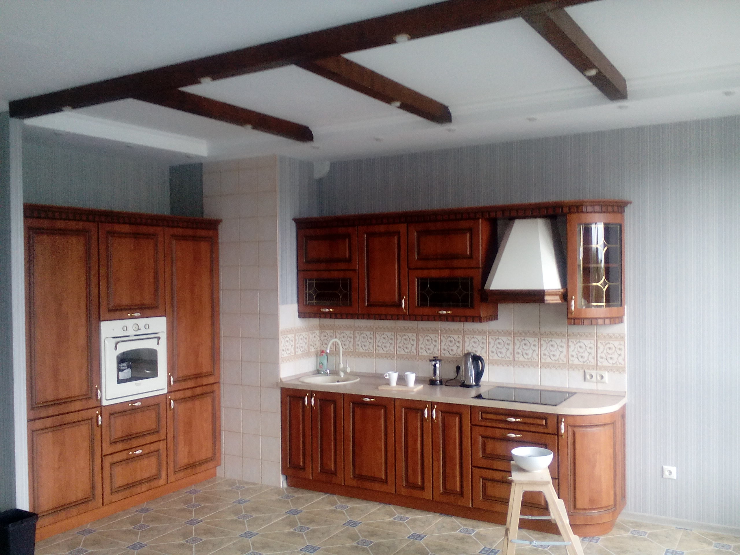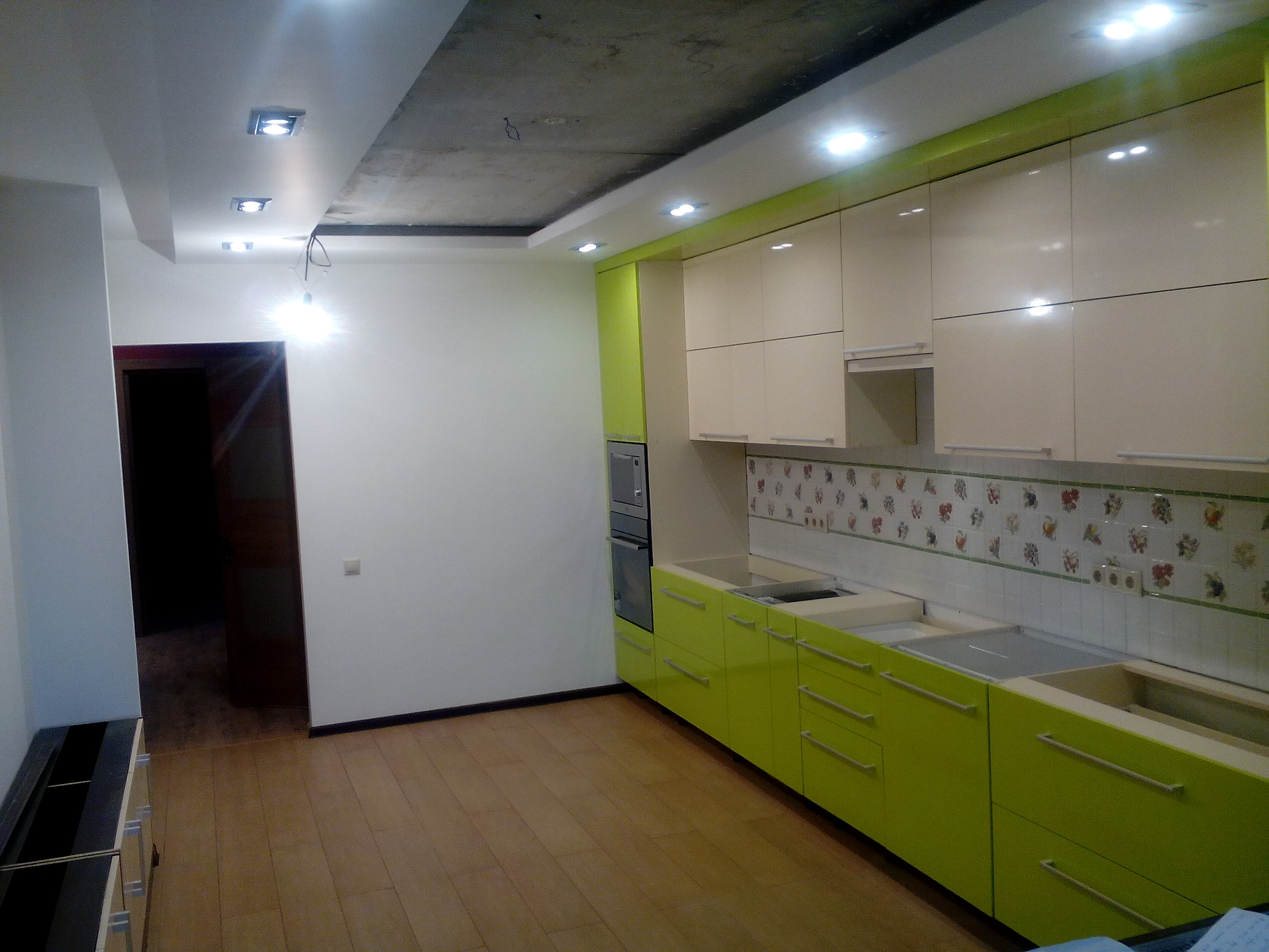 ровные стены, потолок и точные углы в кухне. Отлично выполнены отделочные, малярные